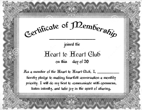 Click the button above to join the Heart to Heart club and receive this certificate and your first Idea emailed right away!